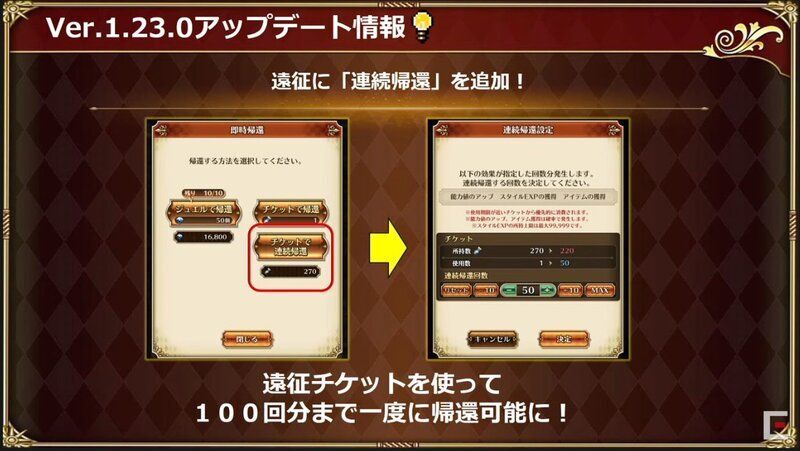 遠征をまとめて一気に消化することが可能で、最大100回まで対応するそうです。