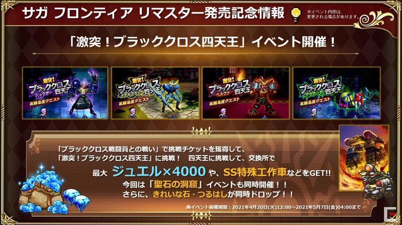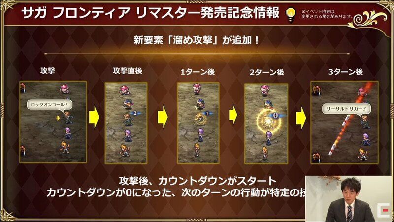 ロマサガRSに関する最新情報に関しては、Day1(4/14(水))の第2部(20時~)に配信されます。