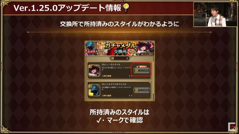 ガチャなどで入手したスタイルを確認しやすくなるように追加