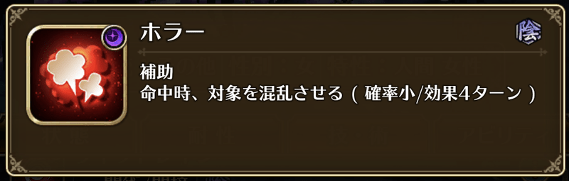 | ホラー | 闇術/陰 | 単体混乱付与 |