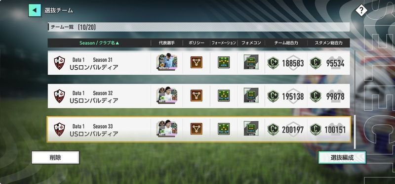 チーム選択の1.2.3.4をポチポチ切替えてたら