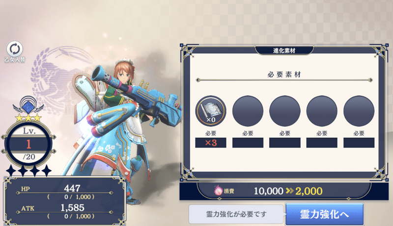 低レアキャラは育成コストが低く、貴重な進化素材は星5キャラの半分以下なのでレベルの上限解放もしやすくなっています。