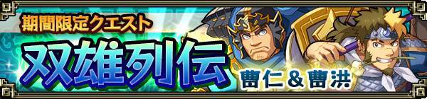 | 【重厚なる将】曹仁 | 魏 | 2 | 5985 | 5055 | 高防御 | 正々堂々!:技能封じ3人3ターン 重々しき打撃:9999 |