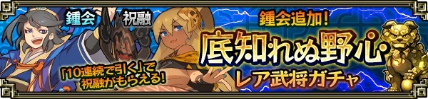 上記期間中、「底知れぬ野心 レア武将ガチャ」を開催します!