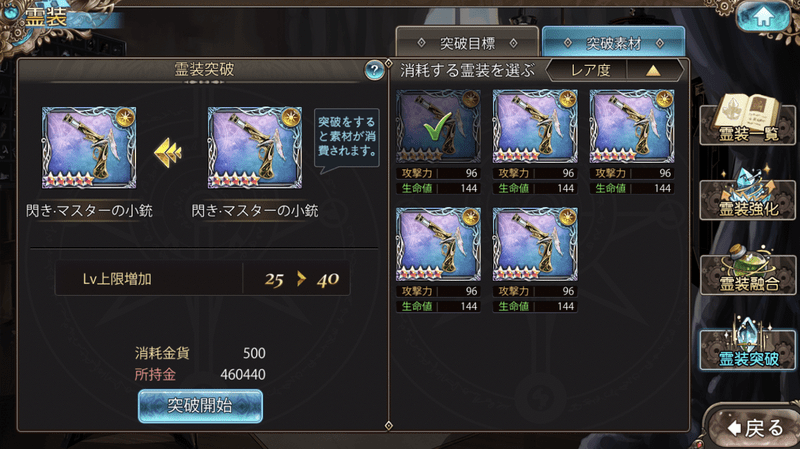 武器も上限までレベルを上げたら、限界突破するようにしましょう。