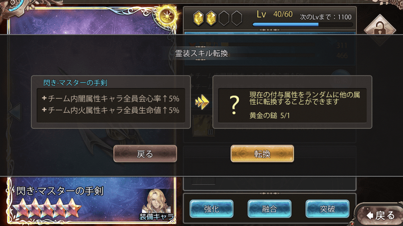 「黄金の槌」を使用し、霊装スキルをランダムで変更することができます。