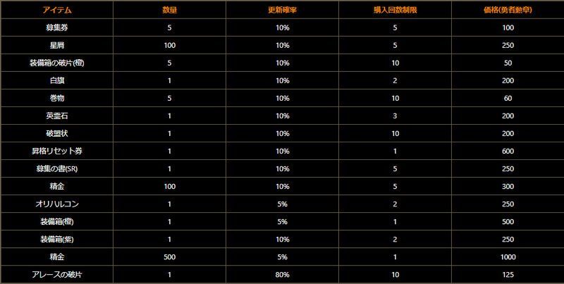 c)シーズン順位によりシーズン順位報酬の功勲宝箱、募集の書(SSR)と募集の書の破片(SSR)、さらに万能素材の破片とオリハルコンまでを配布いたします。さらに一番目のプレイヤーにアレースの専属武器を配布いたします!シーズン順位は4週で一度リセットします。