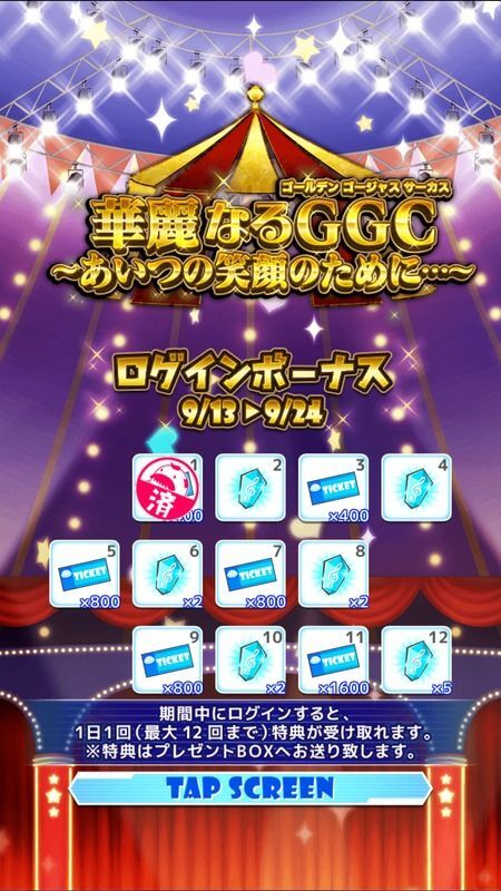 ログインボーナスは0時より入手できます。