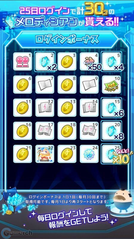 - 1度だけあったログインボーナス、4+5nの日にメロディシアン