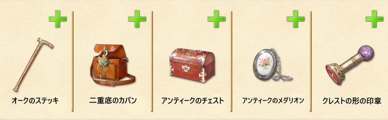 - 以下は「カフェ」で見つけるアイテムのリスト
