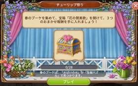 - 「宝箱」「おばけの光」パズルをクリアすると3~5の「春のブーケ」が手に入る