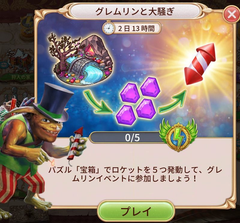 - 「宝箱」パズルでロケットを5つ発動することでイベントに参加できる