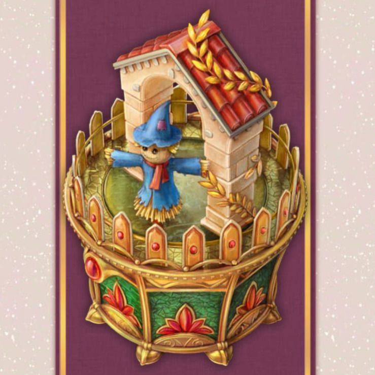 ![]() 大地の贈り物 | ケーキx2, 魚のグリルx1 炎の水晶x1, 幸せの鳥x1 宝石をちりばめた角x1 | ![]() 秋の魔除け |
