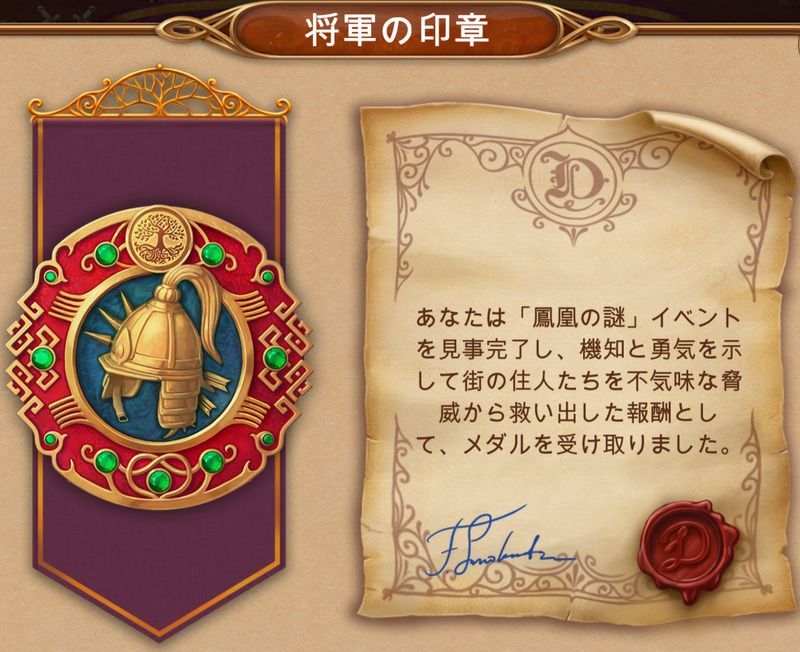| クリア | 伝説のドラゴン(デスクの飾り) 王朝の秘密(チェスト) | ||