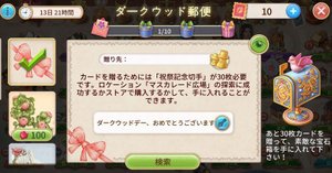- マスカレード広場を探索し「祝祭記念切手」を集めるとフレンドやギルドメンバーにカードを贈ることができる