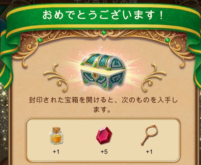 - 150個のエメラルドを集めると 封印された宝箱からランダムで3つの報酬を受け取れる