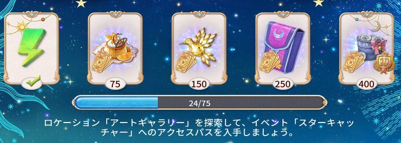 |  幸運のシンフォニー | 1時間の間エネルギー消費がゼロになり アクセスパスが手に入る確率が100%上昇する(イベントのアクセスパスは除く) |