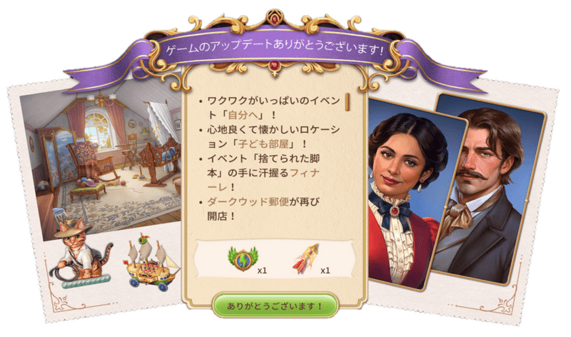 - その他:宝箱パズルのアニメーションの改善・メールアドレスリクエストウィンドウフローの改善・古代カードパズルの背景を再デザイン
