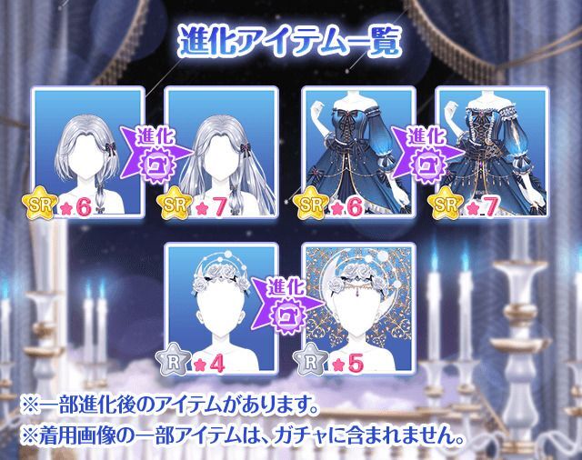 ![]() ★4 はにかむ女神チーク | ![]() ★5 近くて遠い微笑み | ![]() ★6 ムーンナイトドレス |