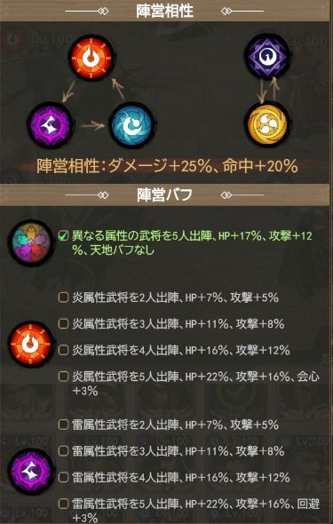 天地陣営の編成で、ロー狩り役(体力が少ない武将を狩る)の天・立花誾千代とダメージ分担の能力を持っている天・竹内半兵衛を編入すると、初級パーティーと比べて、より強い火力と生存力を持っています。