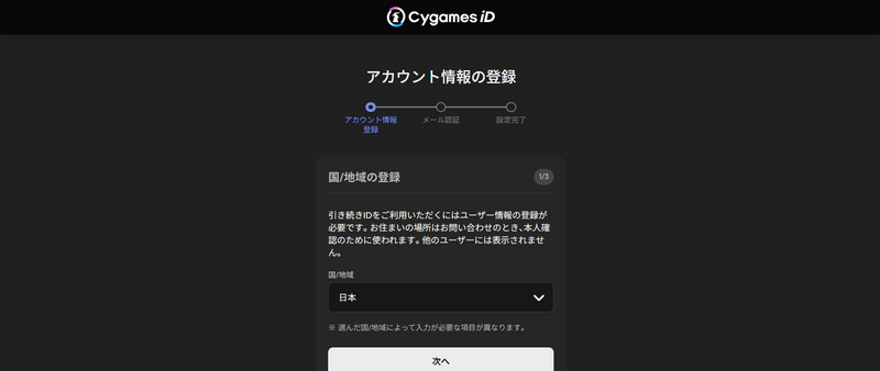 | 1 | ![]() https://cygames.com/にアクセスしてCygamesIDをはじめるを選択 |