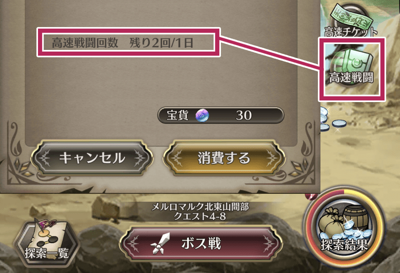ボスの討伐成功報酬が高速戦闘並みに多く、ランクアップの経験値も高い為、高速戦闘同様にあると無いとではかなり違う。