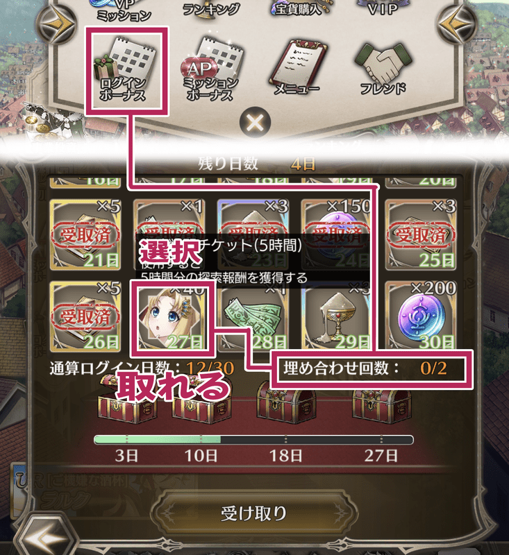 意外と便利な機能であるログインボーナス埋め合わせ。