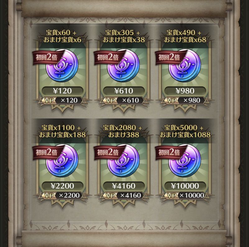 特に宝貨購入は初回購入が二倍になって居るのでお得だ。
