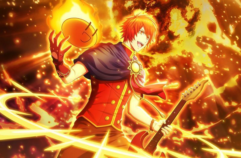 | 音也 | 俺のギターと蘭丸先輩のベースの セッション、やっぱりめちゃくちゃ 楽しい! ちょっと緊張もするけど、 その分いいものになってるよね! |