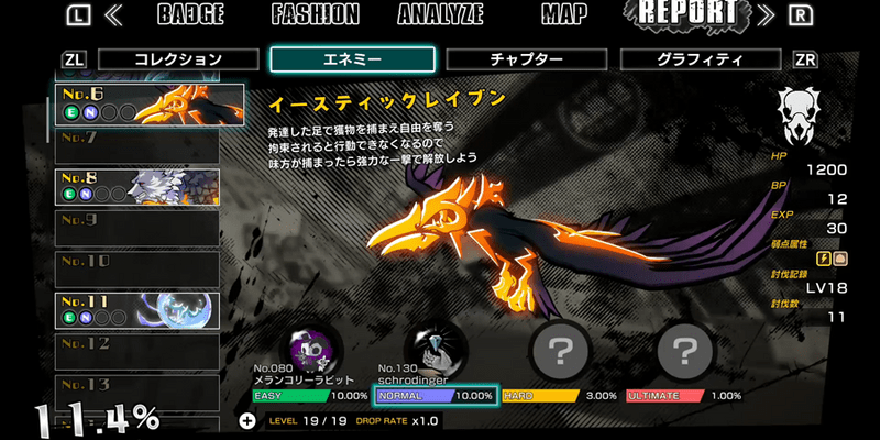 Week1では、難易度「ノーマル」でドロップ率が100%になるまでレベルを下げて戦いましょう。