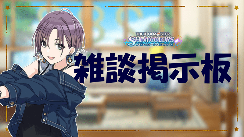 アイドルマスターシャイニーカラーズ(シャニマス)の総合「雑談掲示板」です。シャニマスに関する話題や雑談などお気軽に書き込みください。ファン交流の場ですのでルールはお守りください。