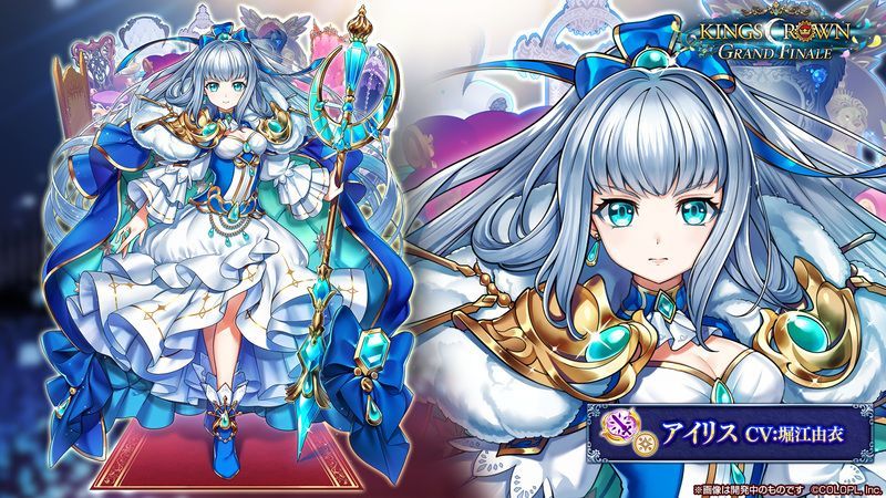 | 戴冠を司る白の巫女 アイリス cv.堀江由衣 王冠の力を引き出すため祝福を授ける少女。 正しき力は、正しき者ヘ―― |