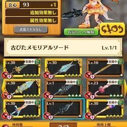 | 騎士のロングソード └真・バルムンク | 211 40 67 | 極凍4 水230 | 水属性ダメージ+150% HP80%以上で移動速度50%強化 HP90%以上で攻撃防御会心15%強化 | |