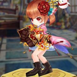 式神<天后>を召喚し、敵に炎属性ダメージを与える。式神はセツナに呼応して攻撃や回復などを行う。