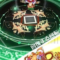 その場で蹴り上がり、回転しながら自身のHPを回復し、周囲に雷属性ダメージを与える。