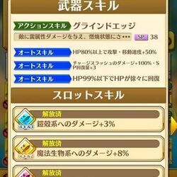 ラッキー お菓子 | A | ・剣士の会心+20% ・チャージ時アクションスキル強化+15% ・雷属性ダメージ+15% |