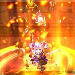 - ヒット数は標的との距離と標的の大きさにより変わる。例えば案山子にはせいぜい1、2ヒット程度だが、マルドゥークのような大型の敵が相手だと5ヒットする。敵が軌跡に合わせて移動しても当然ヒット回数は増える。