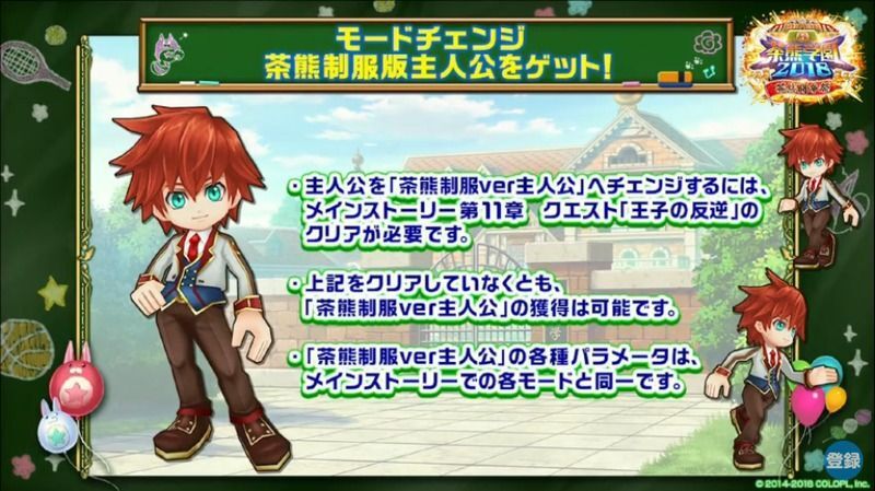 メインストーリーの第11章「王子の反逆」をクリアすることで主人公を茶熊制服バージョンにチェンジすることができます。