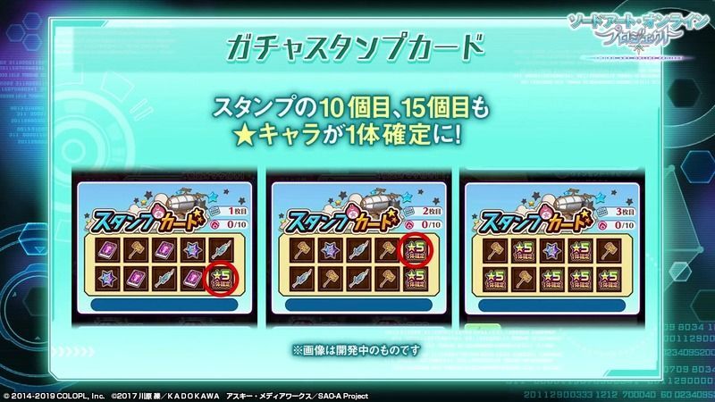 今回の白猫とSAOのコラボではキャラ数が多いため、ガチャスタンプに確定枠が実装されました。10回目と15回目が確定枠となっているので、イベキャラをコンプリートしやすくなっています。