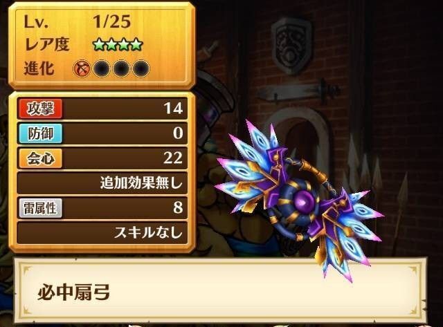 | 必中扇弓 → 風羽孔雀弓 → 絢爛朱雀戦弓 → 絢爛朱雀戦弓・改 → 真・絢爛朱雀戦弓 | |