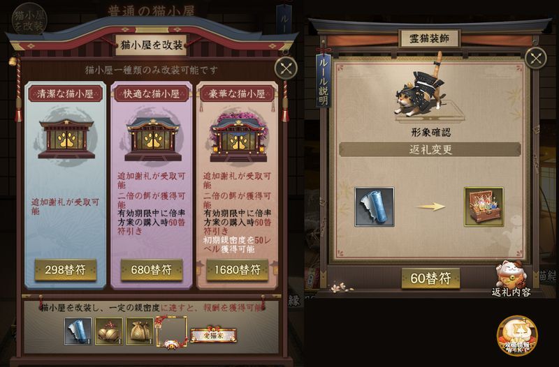 注意 猫小屋の改修をしないと餌の購入は出来ません