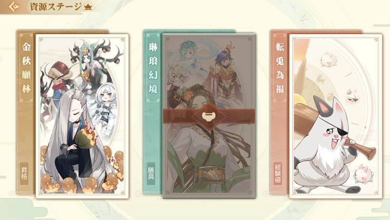 資源ステージは、食魂の昇格素材、レベルを上げる兎饅頭、装備アイテム膳具、などを入手できるクエストです。レベルがMAXになったり、メインシナリオに勝てなくなったら、資源ステージに挑戦してみましょう。