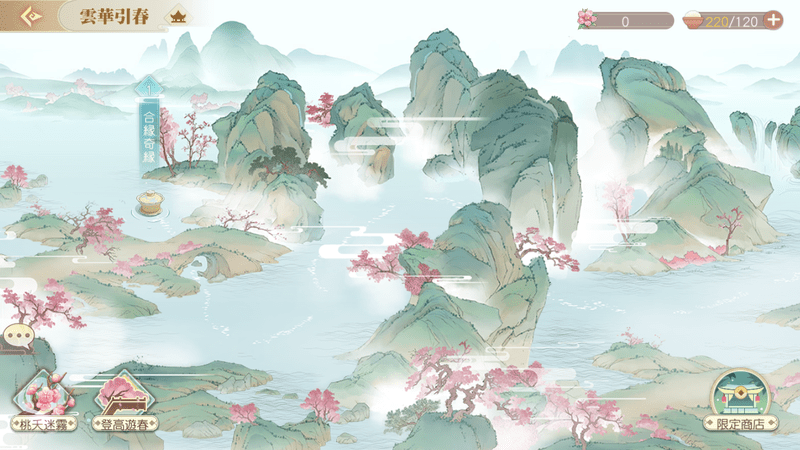 普通ステージをクリアすると解放される困難ステージ「桃天迷霧」や桃天迷霧ステージの一定クリアで解放される「登高遊春」など、様々なステージが用意されています。