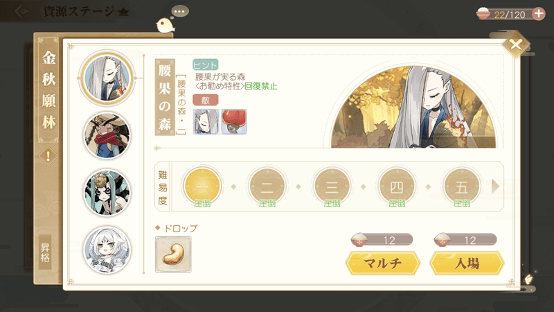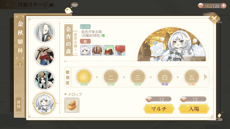 食物語の資源ステージ「金秋願林」についてまとめています。それぞれの戦い方やおすすめ食魂などを記載しているので参考にしてみてください。