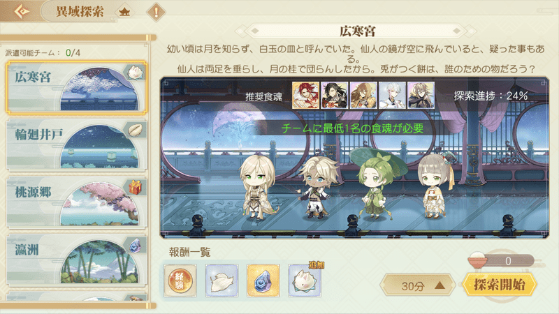 異域探索は食魂を探索に行かせ、時間経過によって報酬を獲得できるコンテンツです。自分のタイミングに合わせて探索に派遣させておきましょう。