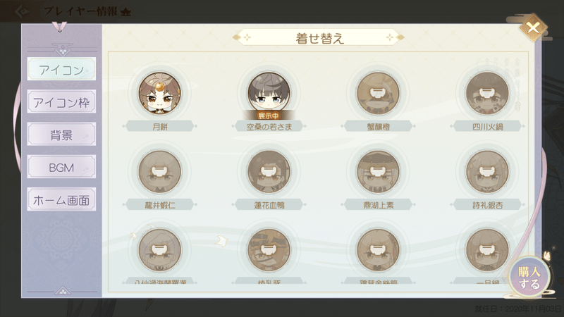 着せ替えでは、アイコン、アイコン枠、プロフィールの背景、BGM、ホーム画面背景を変えることができます。