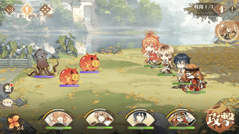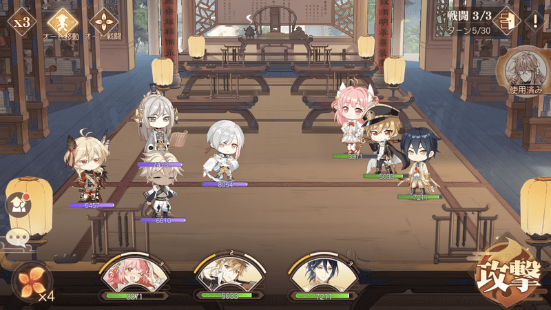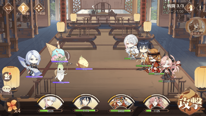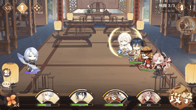 できる限り早めに敵の数を減らすために、味方のステータス上昇やバフ解除(【継続回復】なども解除されたくないため)ができる「太極芋泥」→回避上昇状態ではない場合「蓮花血鴨」→「八仙過海鬧羅漢」または「一品鍋」と、目標を決めて撃破していきましょう。