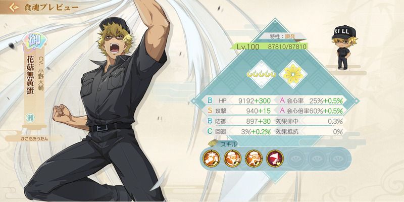 | 6 | 虎脚生風 スキルダメージ+40% |