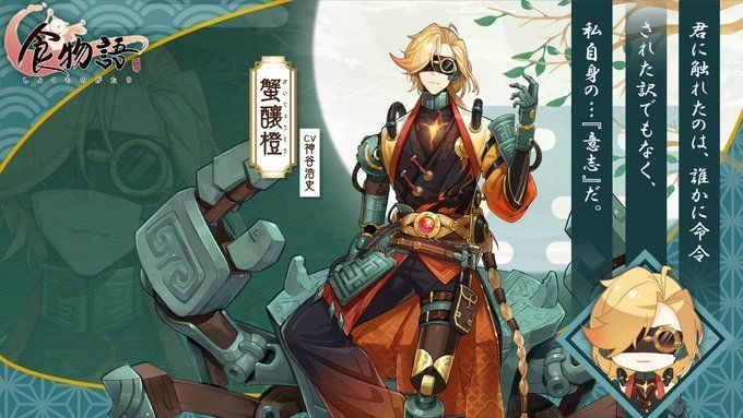 | 紹介 | 江蘇料理。南宋の「山家清供」に記載してあるオレンジとカニを調理した古代の料理を現代の杭州で復元された。化霊後は少年発明家に生まれ変わった。いつも絡繰りカニに乗っている、いつも斬新なものを造り出しているが、自分の心だけは造り出せない。 |