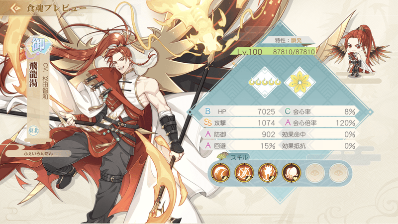 | 4 | 飛龍昇九天 スキルダメージ+65% |